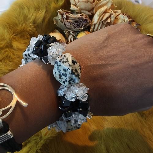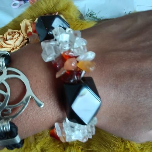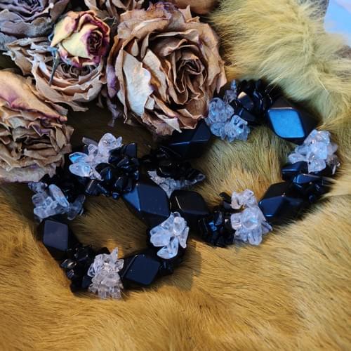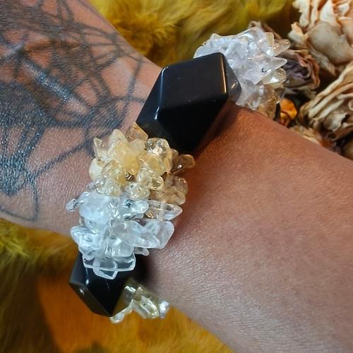 chunky armband met geslepen Onyx en chips van bergkristal .