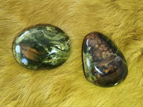 Palmsteen Groene Opaal, deze steen staat bekend om zijn eigenschappen in het balanceren van de emoties, emotionele genezing en vernieuwing. Hij helpt ook bij een overactieve geest door die te kalmeren en helderheid te scheppen in chaotische gedachten.